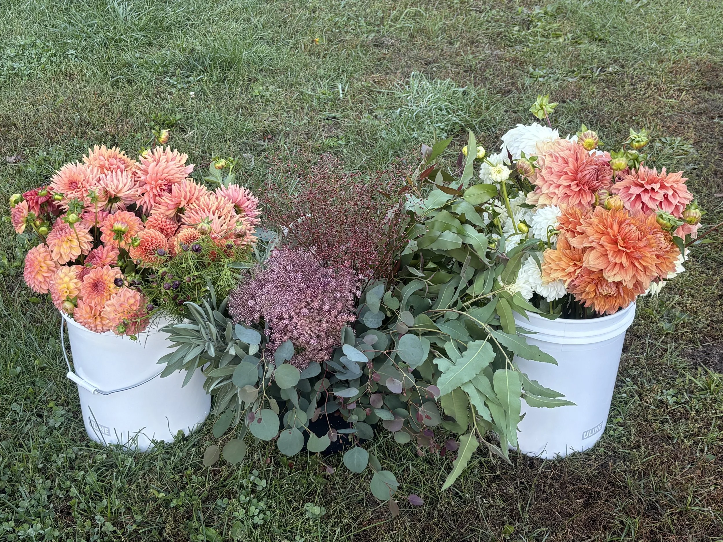 Our bloom buckets are a great options for those that wish to do their own designing. You tell us the color palette and we harvest to order! This and more available on our à la carte menu.